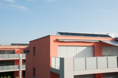 Lösung: Warmwasseraufbereitung mit Kollektoren auf dem Dach.